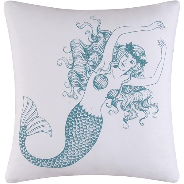 Amazon Com C F Enterprises Cora Blue Square Mermaid Pillow Home Kitchen